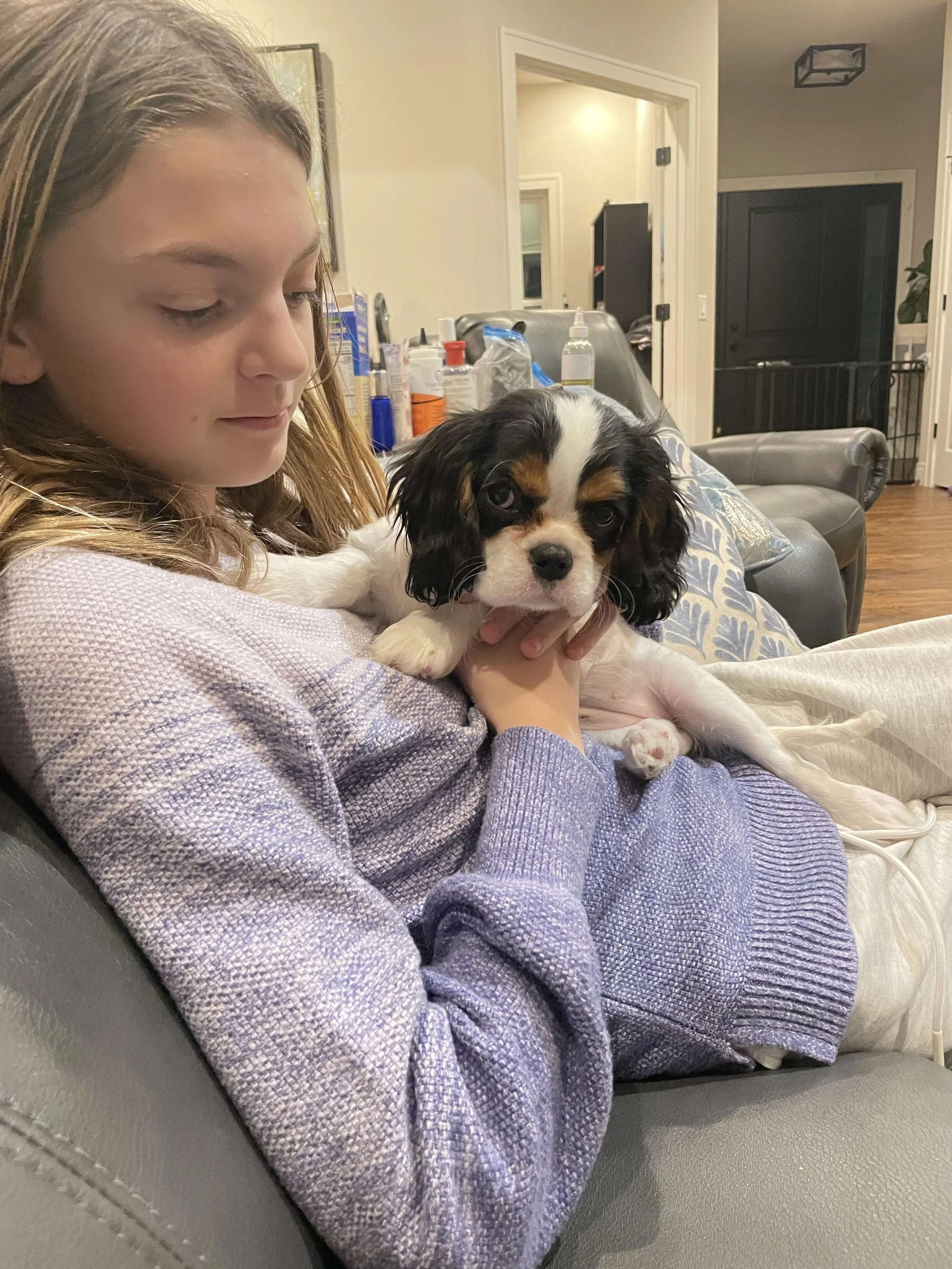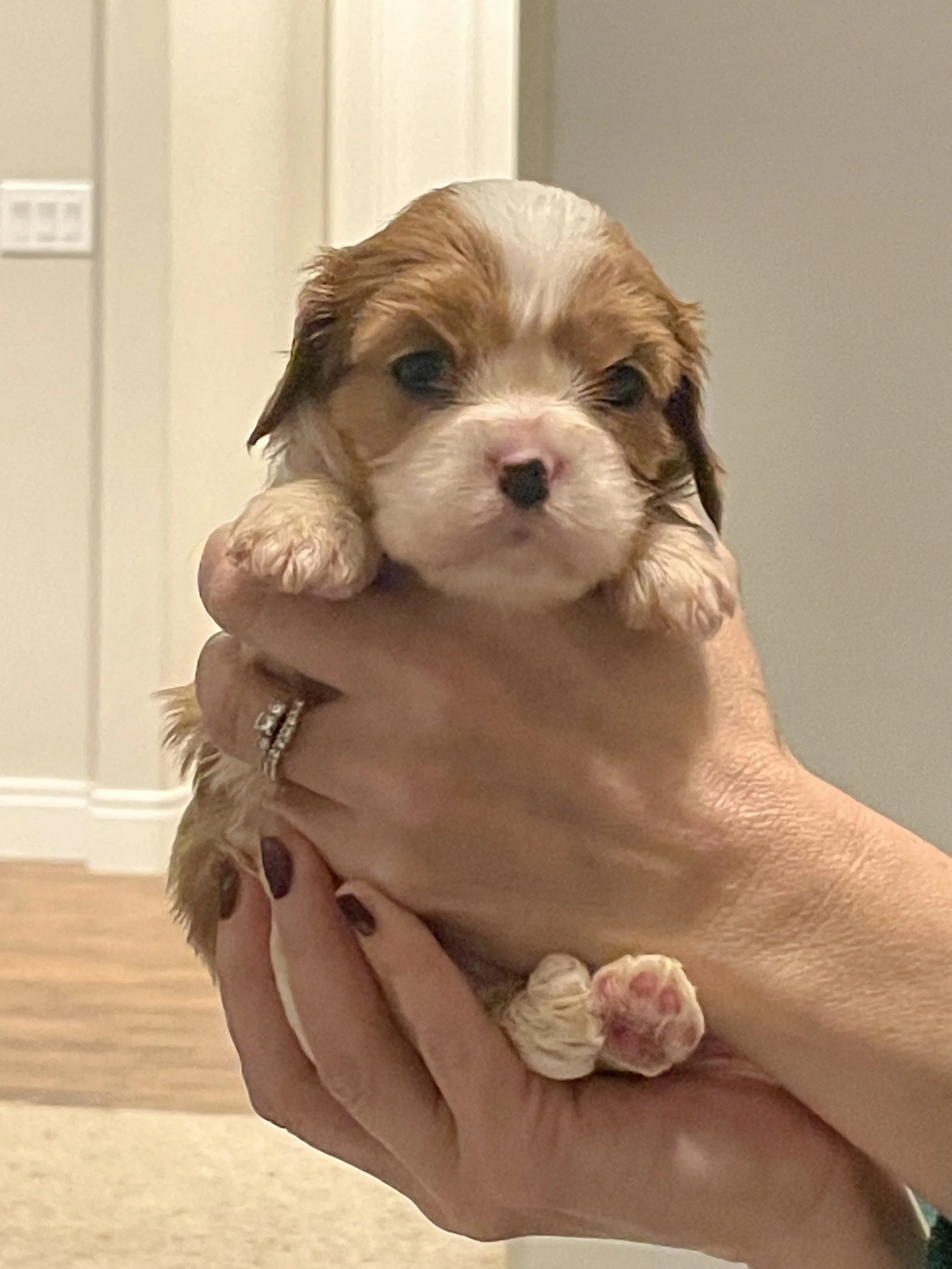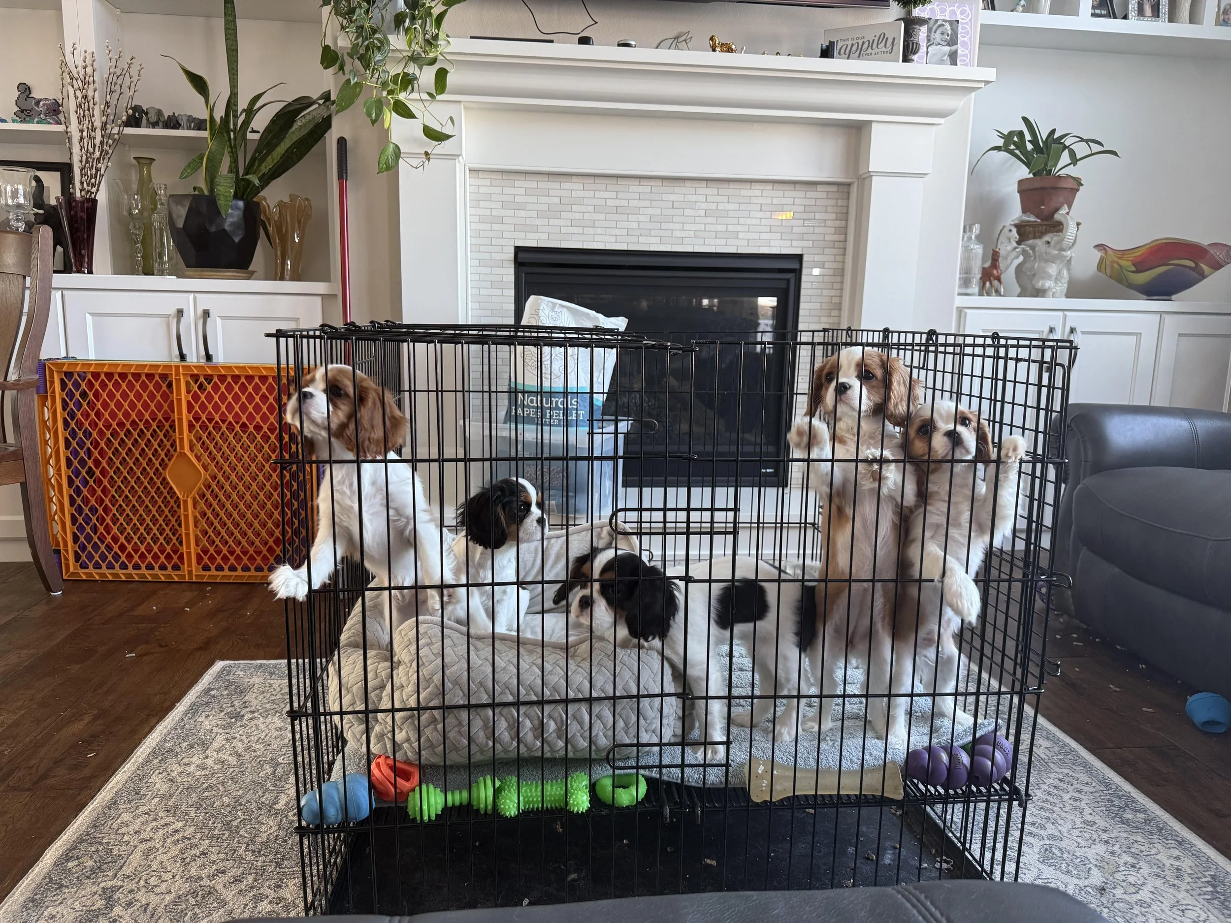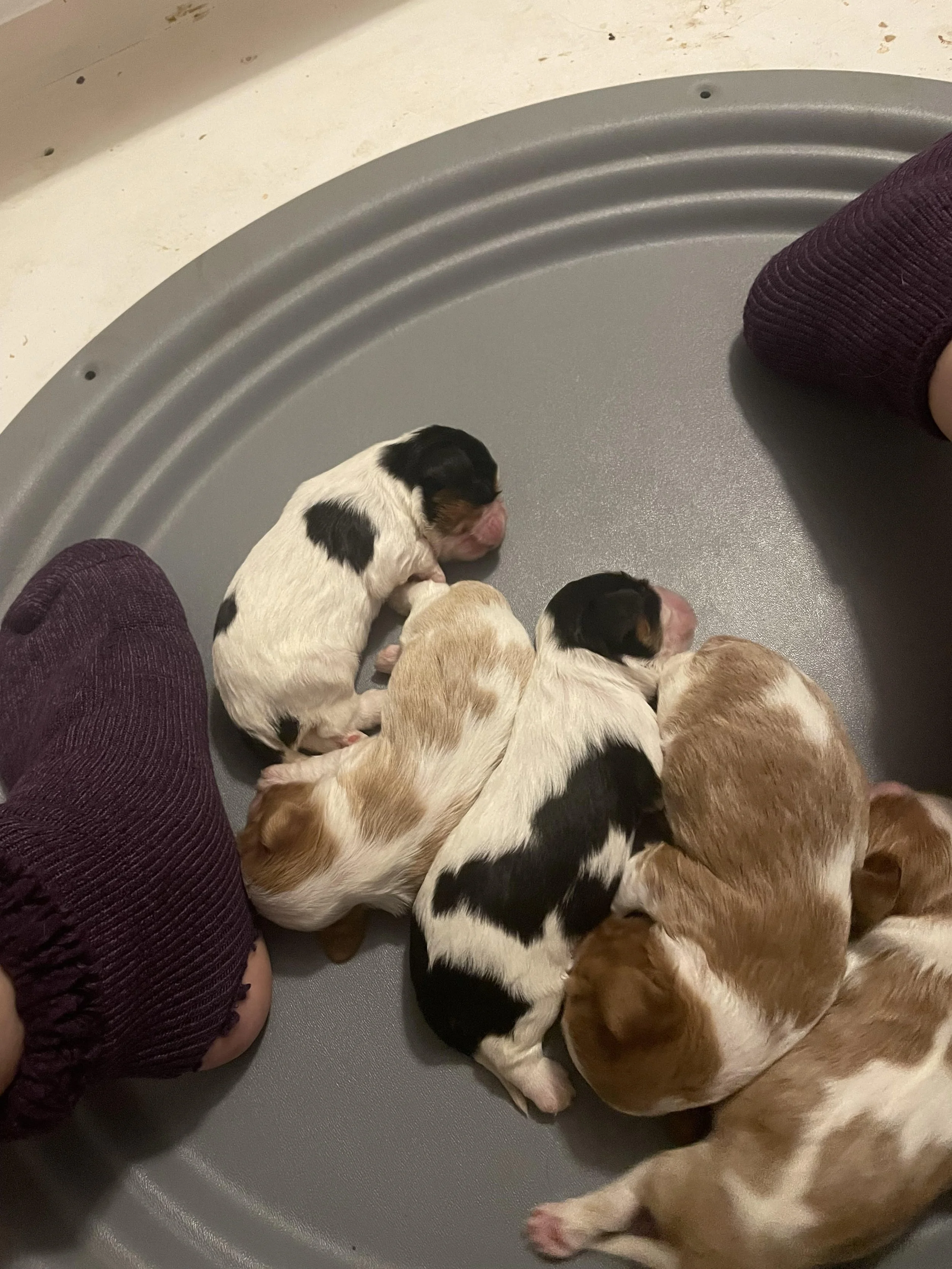 Lightening had 3 blenheim and 2 tri-color babies on 10/29/2025. They are all active, healthy puppies! We are still looking to place the two tri-color females and 1 blenheim female.